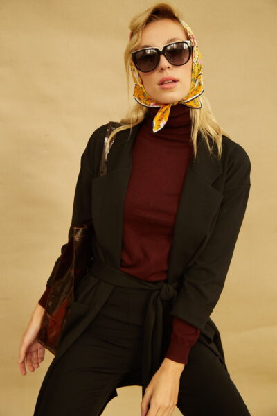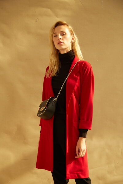 Przedłużana marynarka ELLE to wczesnojesienna propozycja od LuLu dla kobiet ceniących sobie elegancję. Marynarka o ponadczasowym klasycznym kroju. Wykonana z lekko elastycznego mięsistego materiału. Długość do kolana oraz kimonowe wiązanie optycznie wyszczuplają figurę. Pasek podkreśla talię oraz biodra. Rękaw typu 3/4 daje olbrzymie możliwości stylizacji. Z każdym rodzajem sweterka, cieńszym czy grubszym, ten model będzie tworzył zgrany duet. Może być noszona na sportowo, jak i w eleganckim wydaniu.