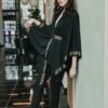 Tacjana w kolorze tapenade to propozycja spódnicy mocno rozkloszowanej, o kroju z koła, rodem z lat 50. ubiegłego wieku, ale w zdecydowanie nowoczesnym wydaniu. Dla wygody noszenia została uszyta ze 100% wiskozy. Wyróżnia ją rozpięcie na całej długości ze złotymi guzikami. Dzięki delikatnie dłuższym bokom podczas chodzenia spódnica subtelnie porusza się, podkreślając swój nieco szalony charakter. Regulowany, ekskluzywny pasek z logo LuLu to kolejny praktyczny i przykuwający uwagę detal. Długość do kostek optycznie wydłuża sylwetkę, więc nie bój się sportowego obuwia. Jeśli zaś zależy Ci na eleganckiej stylizacji, załóż szpilki i ruszaj na podbój miasta. Idealnie sprawdzi się w komplecie z czarną bluzą LuLu Deep Black, która w tym sezonie również została wzbogacona o nowe wyróżniające ją detale.